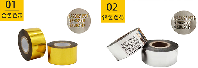 金银色进口打码色带主要针对需要经过低温冷冻、高温蒸煮的产品在软包装膜上打印生产日期、批号及必要的文字标识,具有耐摩擦、字迹标识清晰完整、附着力强、环保等特点。25mm装192卷/箱,30mm装160卷/箱,35mm装144箱,根据客户具体需求定制规格尺寸。