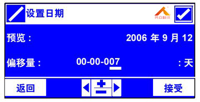 此屏幕用于设置 18 系列内部时钟的偏移量,并预览**终日期。